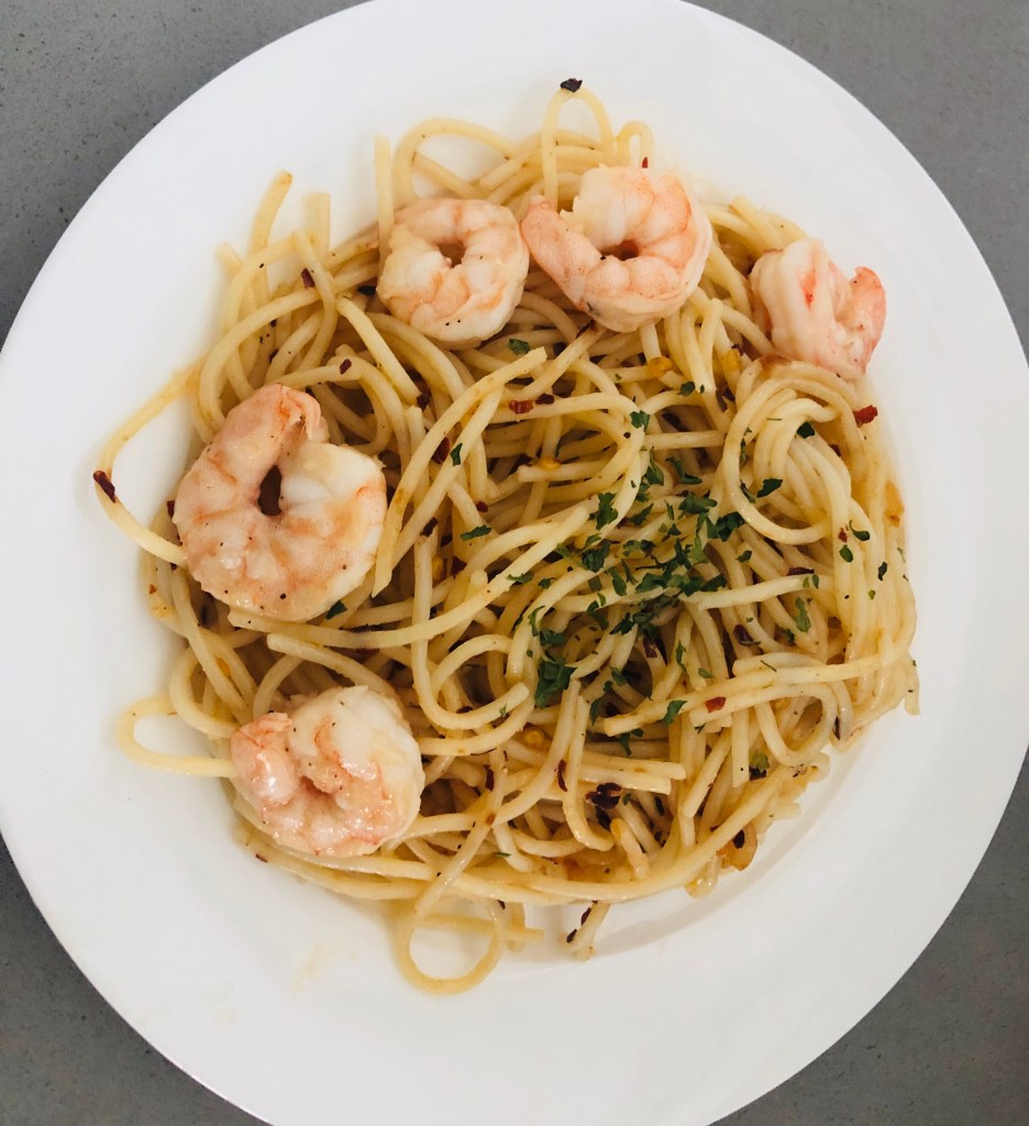 Top your spaghetti with the shrimps or any other thing you wish.